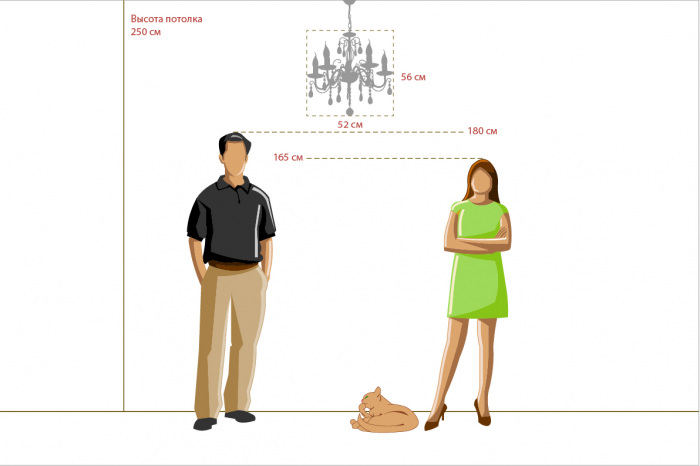 Важный параметр при выборе осветительного прибора. Люстра не должна быть маленькой и незаметной, в тоже время она должна перегружать интерьер. Формула для расчета оптимальной высоты люстры: